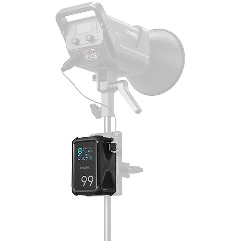 The SmallRig X-Touch Smart Triple-Proof X99 Battery (99Wh, V-Mount) is designed to survive the rigors of set while providing reliable power to a wide variety of devices. This V-mount battery features a 14.5V, 99Wh, 6800mAh rated capacity with strategically placed ports that allow it to power various accessories. The battery's triple-proof design makes it incredibly durable. An IP54 rating makes it water and dustproof, while the housing is drop-resistant up to 4.9'. A 2" touchscreen display and dedicated mobile app facilitate smart control over the battery's functions and streamlines status monitoring.